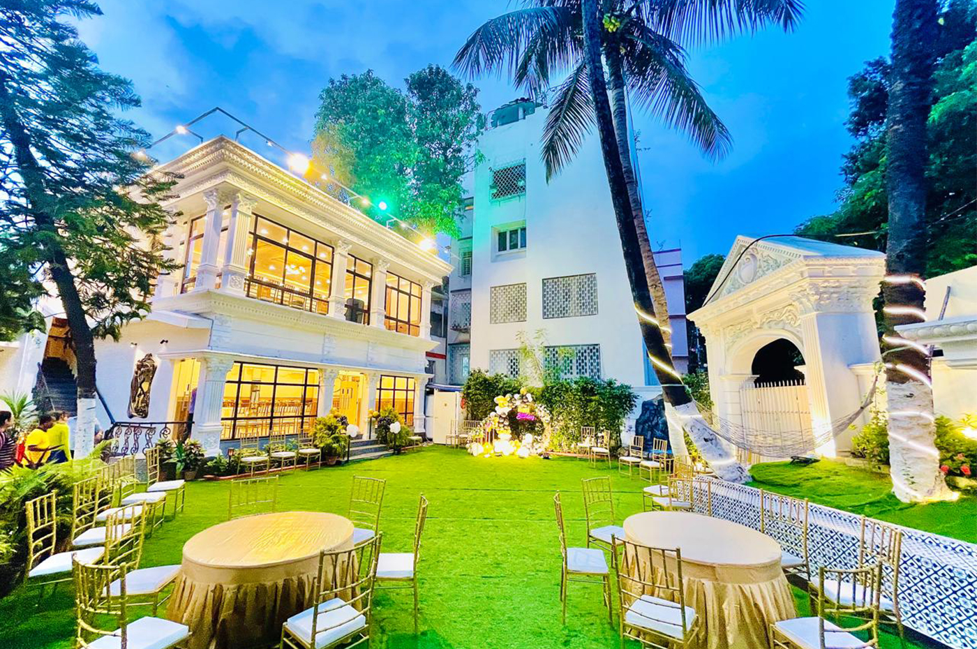 is a Grandiose State of the Art Event Venue encompassing Stunning Colonial Baroque architectures, located right at the heart of the “City of Joy”. It houses the Stately British era Bungalow of the Sengupta’s, which has been beautifully restored to it’s Pristine Glory, overlooking the Serenely Beautiful Exotic Garden. ** Marriages, Receptions, Birthdays, Anniversaries, Parties, Events etc.